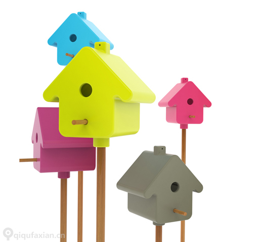 说到“鸟舍”奇趣发现还真写过不少,但是从来没见有人使用过类似的小房子。有人说文化的差异,也有人说国人没有保护小动物的观念,不管怎样,还是需要时间。“Picto”设计就像一个小房子,很传统的“鸟舍”造型。它有17种颜色可以选择,绝对让你眼花缭乱,可以悬挂,也可以站立。“Picto”可以使用于公园,自家的院子、阳台等,很简单也很方便。它不仅仅有漂亮的颜色,还有一个很实用的设计,其背部有一个透明的玻璃窗,可以在不打扰小鸟的情况下,观察它们,而且还方便清洁。设计:Laure Joye & Nicolas Bonnet。