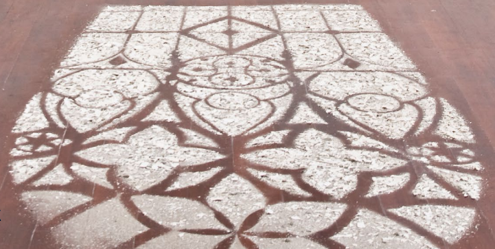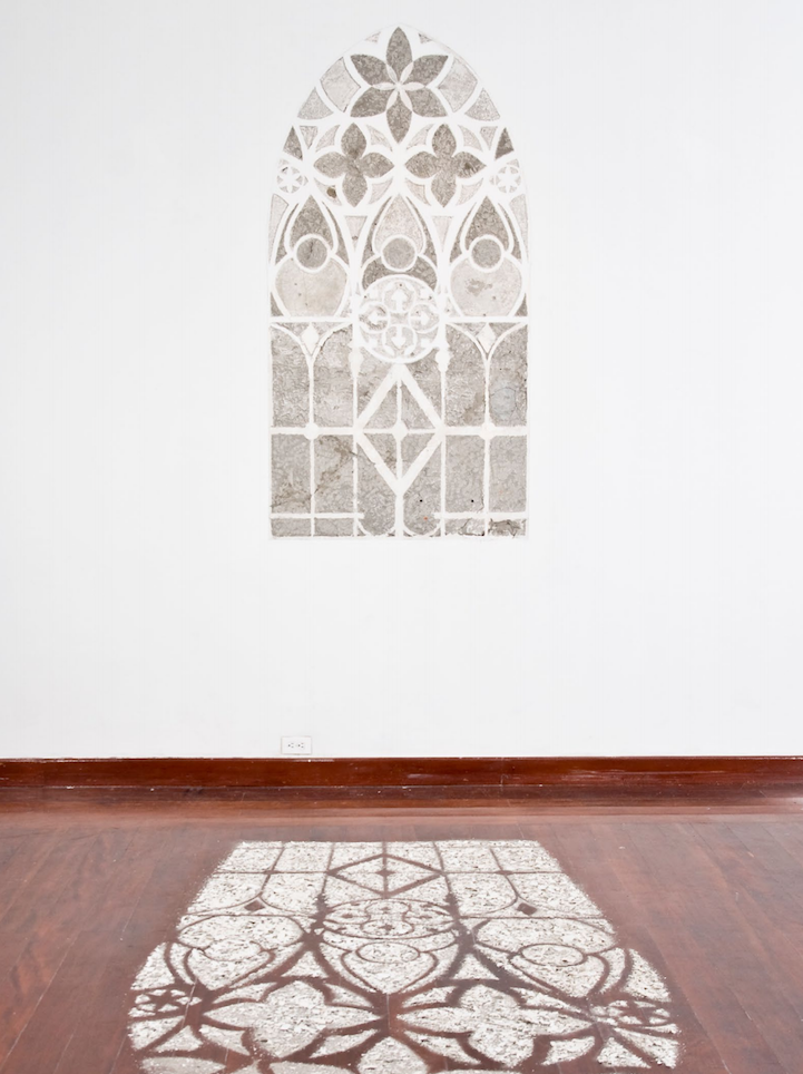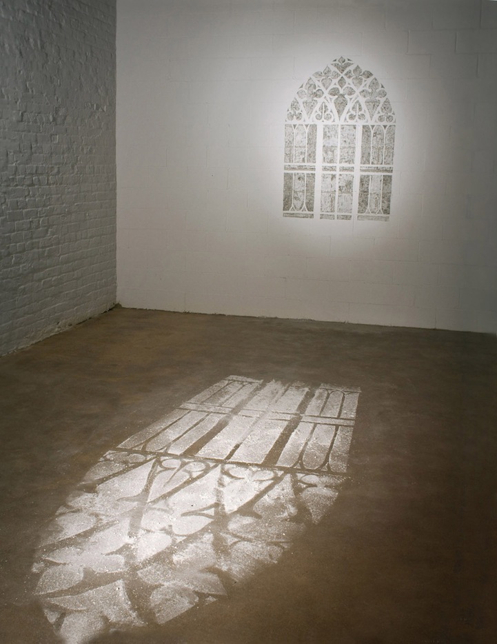 清晨,阳光从窗户照入屋内,在地板上投射出漂亮的影子,唤醒熟睡的我们。一眼看过去,您能发现这扇窗户是设计师在墙壁上画出来的么?更妙的是,地上的投影是由涂料废渣拼凑而成的。
