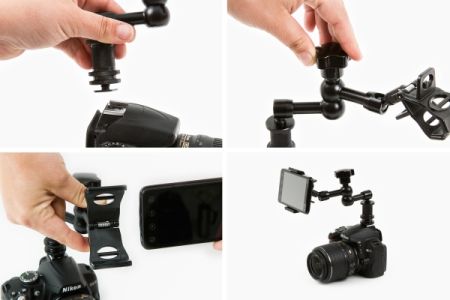 这款全铝热靴支架专门用来夹放手机,以辅助日常拍摄工作,如保持被拍摄者的注意力;播放搞笑视频以捕捉欢乐瞬间;让他们实时看到自己的妆容或者辅助摄影师快速查看日程安排等等。当然啦,各种功能因人而异,更多用途还等待您亲自去开发呢!
