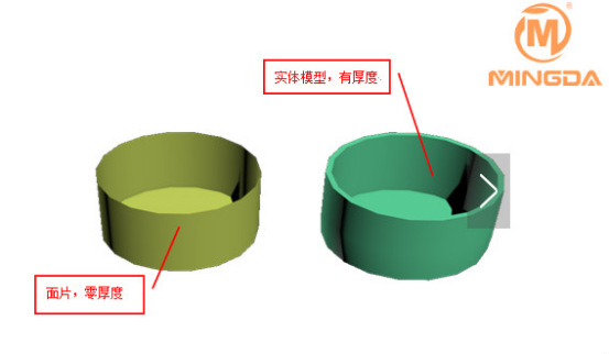 3D打印不能打印面片模型,您必须提交一个有厚度的实体模型。模型壁厚最低为0.5mm(最少是1mm)。因为在各类软件中,曲面都是理想的,没有壁厚,但在现实中没有壁厚的东西是不存在的,所以在建模时不能简单的由几个曲面围成一个不封闭的模型。