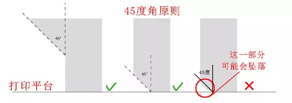记住45度法则。一般模型超过45度的突出部位打印时都需要额外的支撑材料或是高明的建模技巧来完成模型打印,而3D打印的支撑结构比较难做。添加支撑又耗费材料,又难处理,而且处理之后会破坏模型的美观。因此,建模时尽量避免需要较大角度的突出。